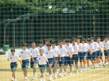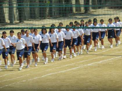 初めての中学校の体育大会 行進では手と足がうまく あわないよ!でも一生懸命