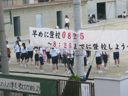 体育大会を先導する 吹奏楽部 誇りをもって学校をリードする みなさん よろしく。