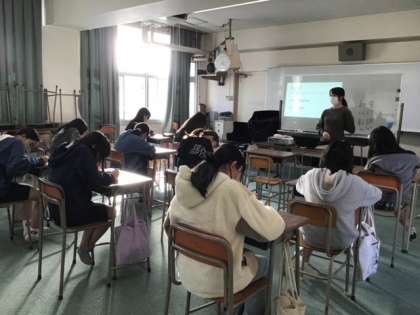 中学校の授業体験を行いました。緊張した様子でしたが、授業が始まると楽しそうでした。
