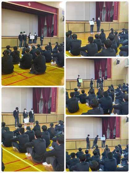 各委員会、少しでもみんなに伝わりやすいように発表の仕方を工夫していて、いつもとは少し違った目標発表の場になりました。