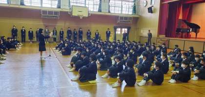 始業式では、校長先生からのお話にみんな目を輝かせていました♪