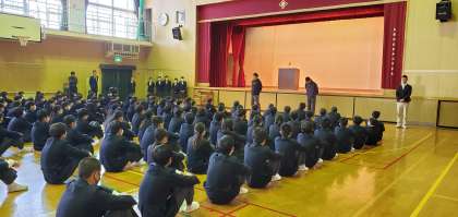 1年生は先週末の宿泊オリエンテーションの代休なので、2,3年生の合同集会を行いました。