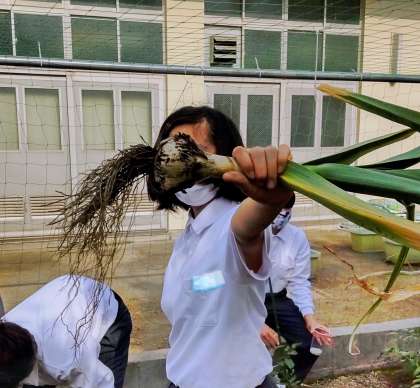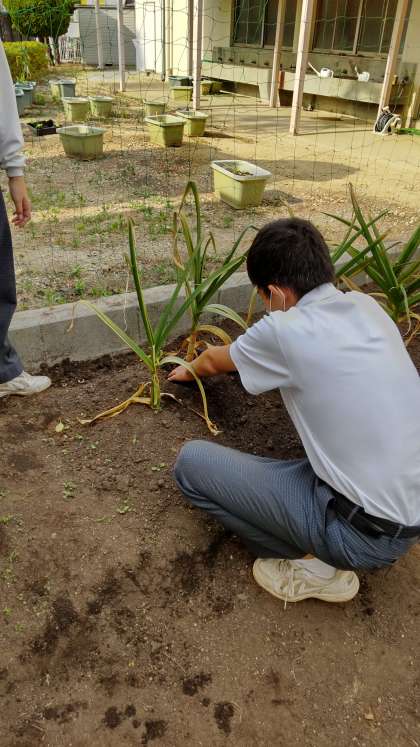 本日は、技術研究部で、ニンニクの収穫が行われました。