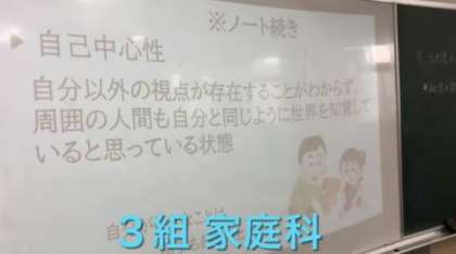 3組の「家庭科」は幼児のこころの発達について