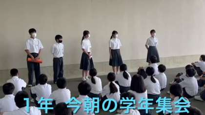 今日の学年集会では、委員会より、自分たちで考え、掲げた目標を発表していました。