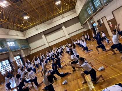 体育館でヨガにチャレンジしました。