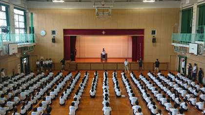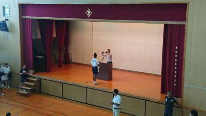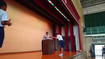 全校集会では夏休み中に活躍した生徒の表彰伝達を行いました。
