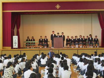 10月9日(水)生徒会選挙が行われました。新しく生徒会に選出された皆さん。 みんなが安心して過ごせる学校めざして、取り組んでいきましょう。