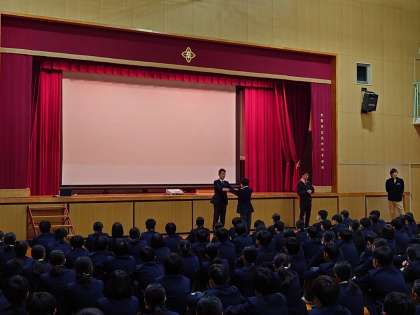 生徒会から、金曜日に実施した小学生中学校体験の振り返りがありました。