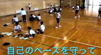 今日はあいにくの天候だったので、体育館でペースランニングを行いました。