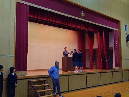 生徒会から募金活動の報告があった後は、表彰伝達がありました。