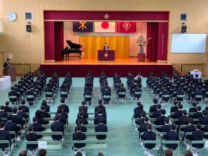 本日、本校体育館にて令和6年度53期生入学式を4年ぶりに来賓をお迎えし挙行いたしました。桜のつぼみがまだ見られるますが、前日までの雨も上がり、よき日を迎えることができました。