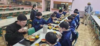 食事係りが配膳をしてくれました。体力をたくさん消費したので、みんなたくさんおかわりしていました♪