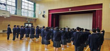 今日は火曜日ですが、月曜日は1年生が宿泊オリエンテーションの代休だったため、全校集会を行いました。出発する前にはできなかったことができるようになり、成長した姿を上級生に見せることができました。まだまだ上級生を越えることはできませんが、足並みは揃いました。今日から大和川中学校がスタートします!!