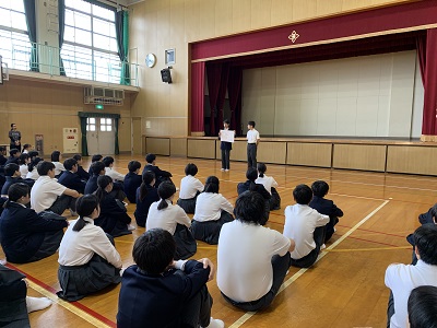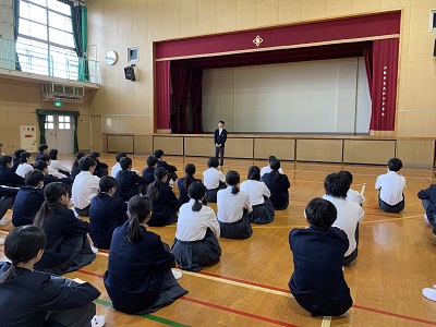 今日の学年集会では、各種委員会からの目標発表や文化委員会から改めて図書室の使い方についての説明がありました。