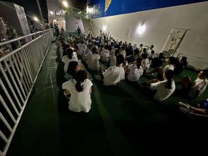 頭上180度に広がる星空にみんなの喜びの声が響きました。船長さんのご厚意でデッキの電気が消え、見上げると星空が広がりました。素敵な思い出として、みんなの記憶に♪