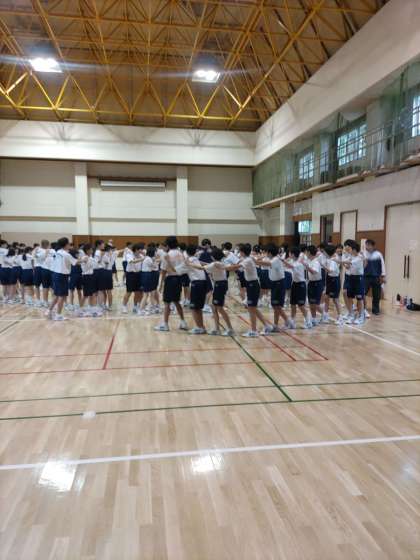 雨の為明日行う予定だったスポーツ大会をオリエテーションと入れかえまして。最初はジャンケン列車。最後は一つの列車になりとても盛り上がる種目でした。