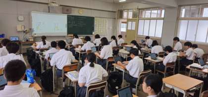 数学の授業でタブレットを使用しました!グループで協力して問題を解きました♪時間内に絵は完成しませんでしたが、頭のトレーニングになりました!