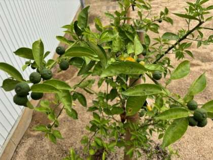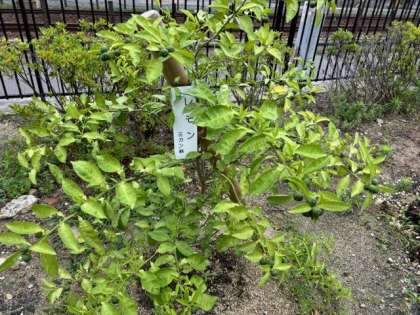 3月末に寄付いただいて植樹したレモンとスダチに実がつきました。