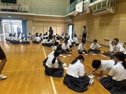 1・2年生は明日の地域清掃に向けて、班で話し合いを行いました。班長を中心に事前にルートを調べてもらい、明日のことについて班で共有しました。