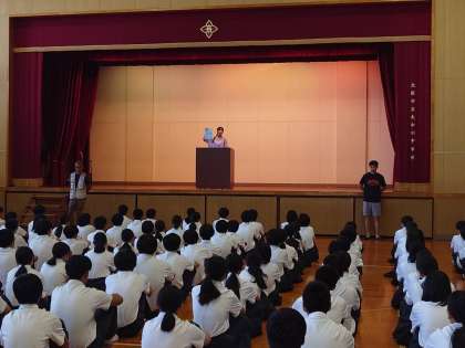 校長先生から、プリント等の提出物を出すこと、防災意識について、スマホやSNSの使い方、環境問題への意識についてお話をいただきました。