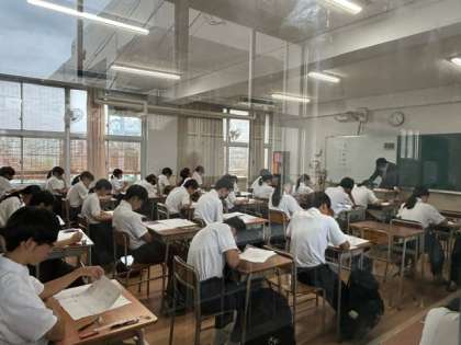 3年生のチャレンジテストでは、時間いっぱい問題に取り組んでいる姿が見られました。