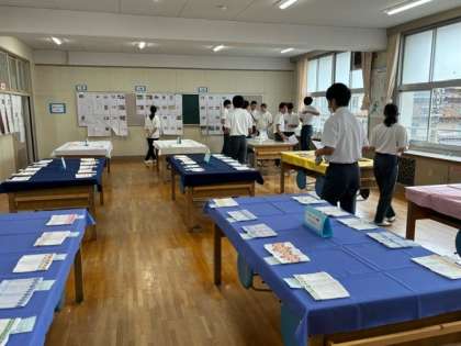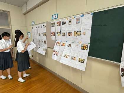 家庭科では、1年と2年「朝食づくり」・3年は「スウェーデン刺繍」の作品が展示されていました。