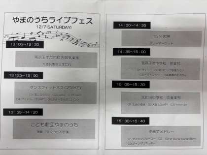 12月7日(土)に山之内小学校で「やまのうちライブフェス」が開催されました。