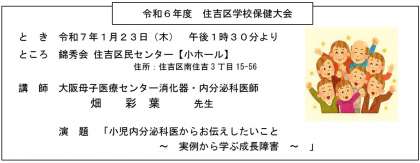 令和6年度住吉区学校保健大会のご案内 〜 R7.1.23 〜