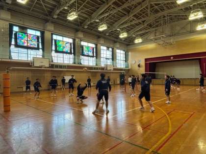 3年男子は、体育館でクラス対抗バレーボールのゲームを行っていました。