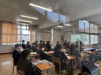 1組は、保健の「精神機能の発達と自己形成」の授業で自分の心と向き合っています。自分の生活を振り返り、事例などと比較し、関係性を見つけ、心の健康の維持を学んでいます。