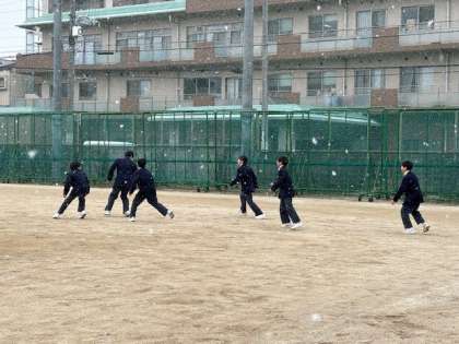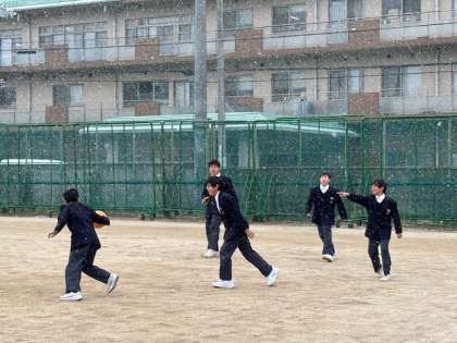 校舎内でゆったりとお昼休みを過ごしている人もいれば、「雪だー!」とグラウンドに飛び出していく人もいました。