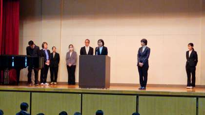 離任式では、今年度をもって本校を離れられる先生方からご挨拶をいただきました。
