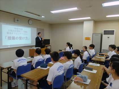 3つのグループに分かれ、それぞれ最初のガイダンスを受けています!集団行動、授業の受け方、学校生活についてを学びます