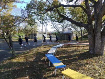 朝の集いで、ランニング、体操をしました。これから朝食です。