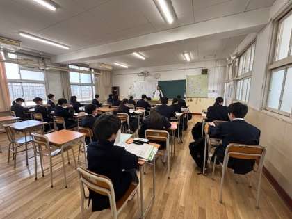 今日の3限は、1組「数学」で多項式の計算を学びました。先生の説明を受けてクラス全員が「分かった!」と手が挙がってました。