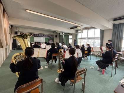 グラウンドでは野球部、サッカー部、陸上部、体育館ではバスケットボール部、バドミントン部、校舎内では吹奏楽部、家庭科部、美術部、技術研究部の活動があります。
