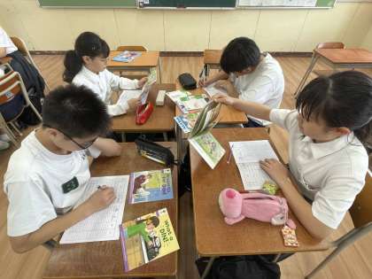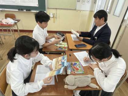 今日の授業から「英語多読」を始めました。多読とは、やさしい絵本から、辞書を使わずに楽しくたくさん読んで、英語の読解力をつける方法です。ORTのレベル1からレベル3の絵本からチャレンジをしていきます。目指せ100万語、1000万語!頑張れ、2年生!