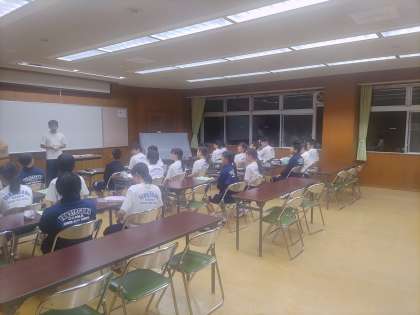 入浴。クラスミーティングのあと消灯となります。明日の活動は、スポーツ大会と野外炊飯になります。しっかり寝て明日に備えましょう。
