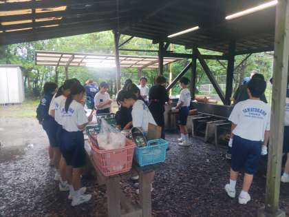 飯盒が始まりました。おいしく作れるかできあがりが楽しみです。