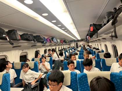 今日はいつもより、朝が早かったので新幹線内の昼食が待ち遠しい3年生♪