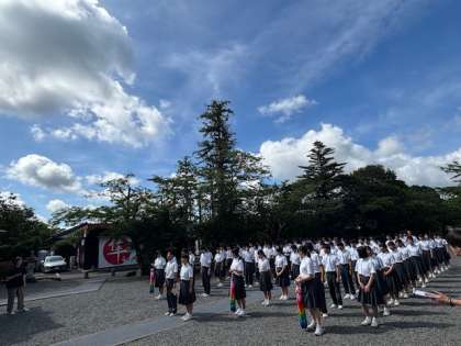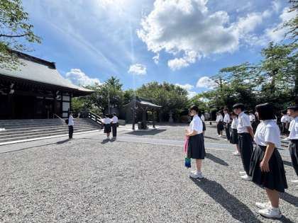 学校と中継で繋ぎ、大和川中学校の全員で平和宣言を行いました。