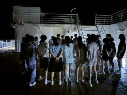 修学旅行の最後の夜は、8階デッキ、星空の下でクラスミーティングを行いました。
