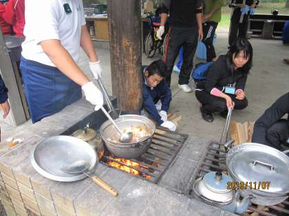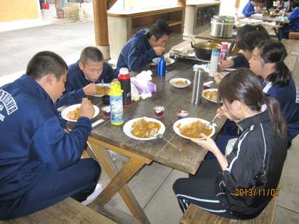 調理係・かまど係等、みんなで役割を分担し、事前に学校で調理実習をして練習したおかげで、美味しくでき上がりました。