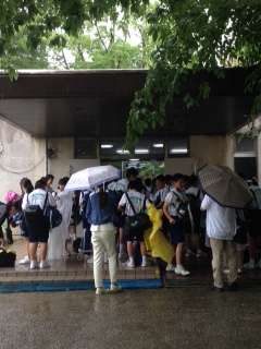 雨は想定内ですが、オリエンテーリングは焼き板工作に変更です。