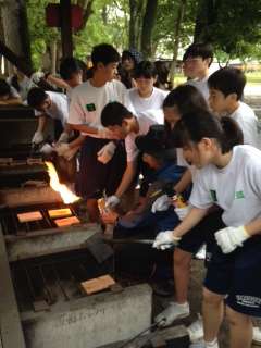 焼き板工作中