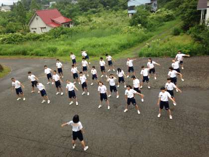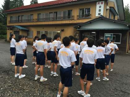 宿舎の前でラジオ体操をして、大阪市歌を歌いました。