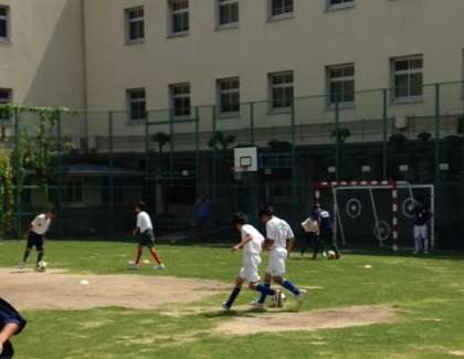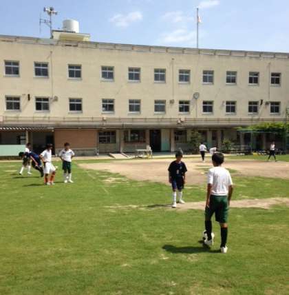 遠里小野小学校で、サッカー部の体験入部がありました。みんな、芝生の上で、練習に励んでいます!