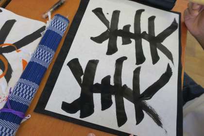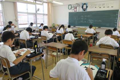 習字をしているときの生徒の表情は、真剣そのもの。頭の中にどんなイメージが浮かんでいるのか、完成するのが楽しみです。