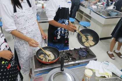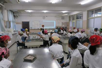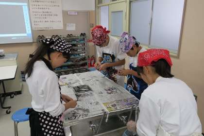 2年生、家庭科の実習です。イワシの手開きの動画を見て、手開きを体験しました。イワシは、パン粉焼きにして食べました。味付けもよく、美味しくいただきました!